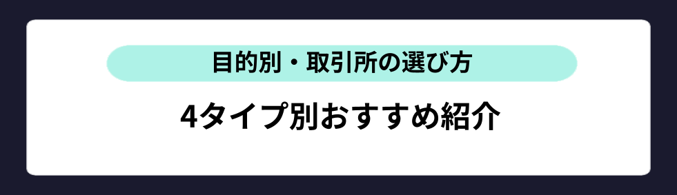 どの取引所も口座の維持手数料はかからない(無料)ため、複数口座を開設して目的に応じて使い分けるのも有効な戦略です。