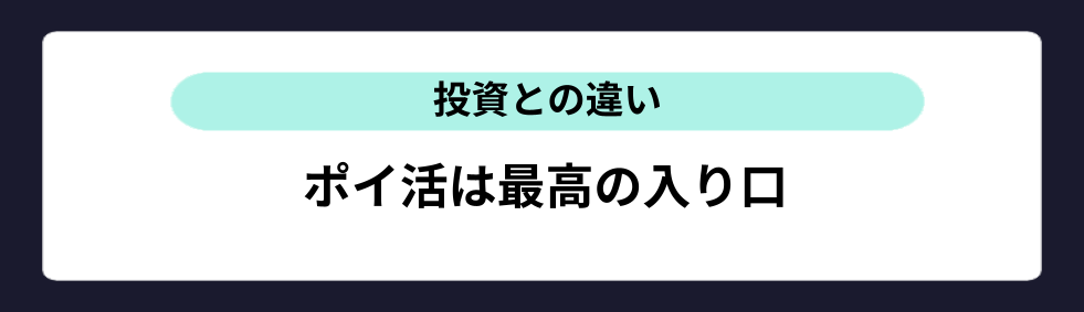 - 目的:ポイ活は「お試し・学習」が主。投資は「資産形成」が主